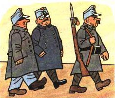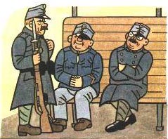— Haiek beldurra sartu besterik ez dizuete egiten —adierazi zuen Xveikek—. Soldaduek ez dute ezeren beldur izan behar. Borrokaldian komunean eroriz gero, garbitu dadila eta aurrera, gudara joan dadila. Denak gas pozoituetara ohituta daude kuartelean egoteari esker, bertan baitira ogi freskoa eta txitxirioak garagarrarekin. Baina orain errusiarrek zerbait asmatu omen dute errekruten kontra...