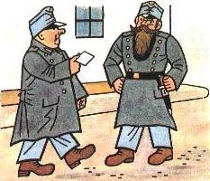 — Gure artera enperadore jaunak berak lotu nahi izan balu ere, ez zenion utzi beharko. Berdin gertatzen da jagoteko txanda duen errekrutarekin: ofizial ikuskatzailea badatorkio zigarreta bila joateko eskatuz, errekrutak zein markakoak ekarri behar dizkion galdetzen dio. Halako gauzak kartzelarekin ordaintzen dira.