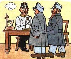 — Nik hiru aldiz egin dut zin —adierazi zuen infanteriako soldadu batek—, eta hiru aldiz izan naiz hemen desertatzeagatik, eta orain dela hamabost urte, eroaldi batian, neure izeba hil nuela ziurtatzen duen mediku-agiririk ez banu, hirugarren aldiz hilko ninduten akaso frontian. Baina nire izeba zenak beti laguntzen dit estutasunian, eta baliteke azkenian gerra honetatik onik ateratzia.
