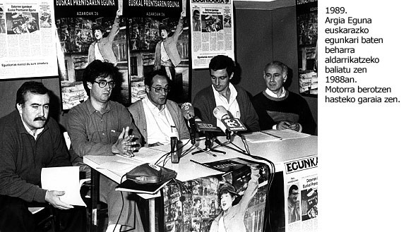 80ko hamarkada osoa zeharkatu zuen eztabaida izan zen egunkari baten beharra. Artikulu, hitzaldi eta mahai-inguruak asko izan ziren han eta hemen, eta horietan eragile beti ageri zen Argia. Ez zen egunkari baten egitasmoa, beraz, gauza berria Argia-koen artean. Joxemari Ostolazak eta Joxemik kasik hamarkada bat lehenago begitantzen zuten euskarazko egunkari bat atera beharko zeneko egoera. Eta eskema jakinik gabe baldin bazen ere, Argia-ren azken urratsak aukera horri bidea zabaltzera zetozen. Taldean ez zegoen txosten idatzirik egunkariaren inguruan, baina denek zuten buruan. Ez zen, beraz, Joxemik izan zuen halako burutazio bat.