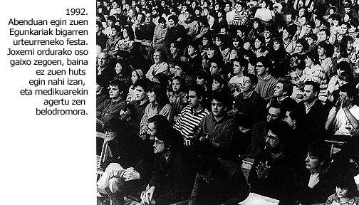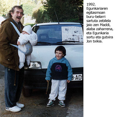Azkenik, abenduaren 6an argitaratu zen Egunkaria. Joxemi oso erasanda iritsiko da Egunkariaren lehen alea kalean jartzeko egunera. Baina lanean jarraituko du, eta ezinbestekoa izango da Egunkariako sailen arteko zubi lanak egiteko. Hori, zuzendaritza atalean zegoen aldetik. Baina, hori gutxi ez, eta Egunkariaren plantxak Egin egunkariko errotatibara eramaten ere ibili zen lehen asteetan: autoan sartu eta korrika batean beti, erlojuaren kontra. Egunkariaren sorrera prozesuaren tentsioari aitaren gaixotasun luzearen sufrimendua gehitu behar zaio. Baita Maddi jaiotzearen ezin kabituzko poza ere. Bi hilabete eskasera, hil edo biziko ebakuntza egin zioten.